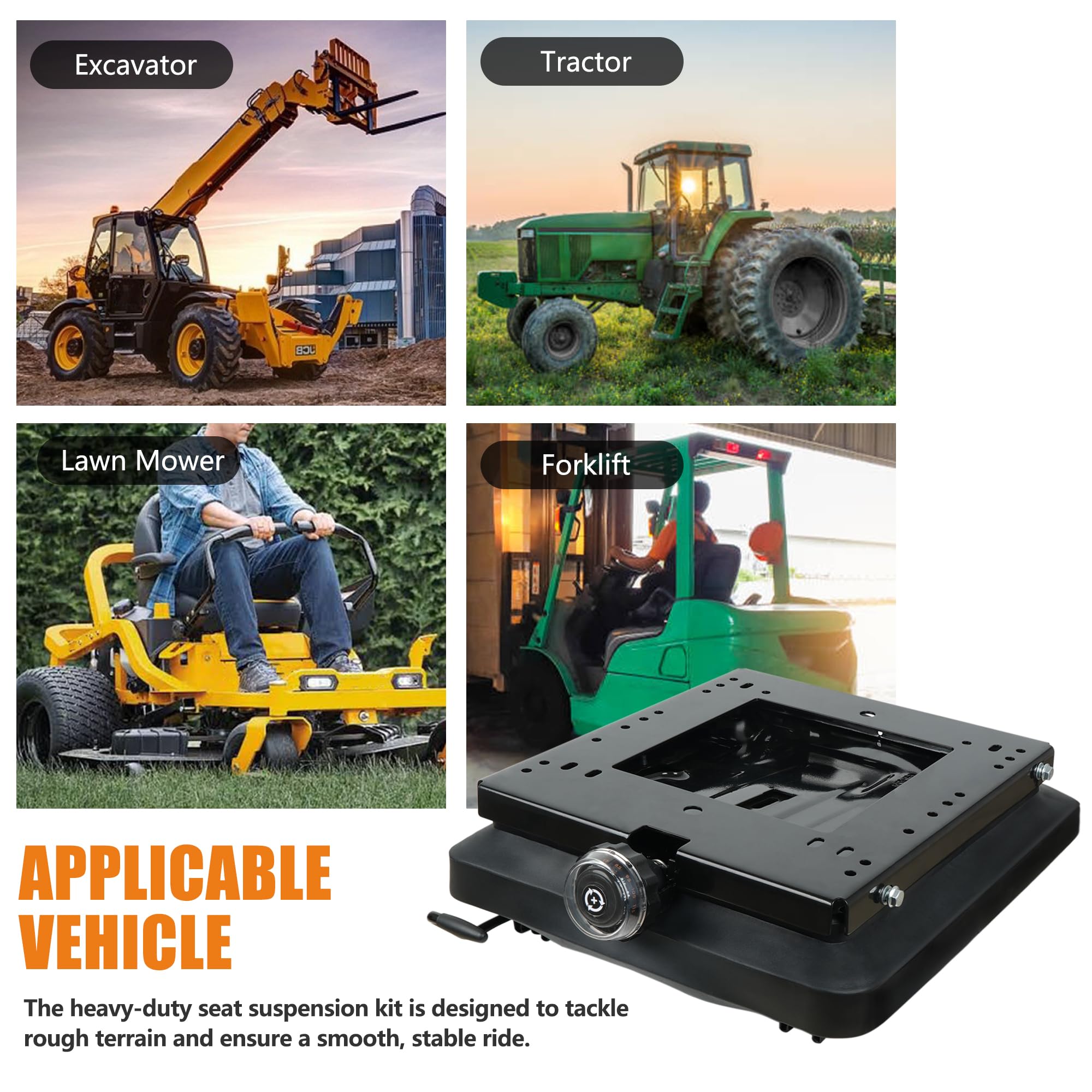 Universal Seat Suspension Kit with Slider Track, Universal Fit for Zero Turn Lawn Mower, Tractor, Forklift, Compatible with Most Aftermarket Seats